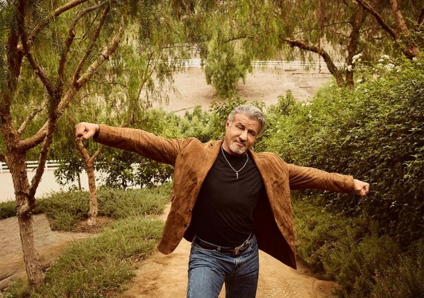 Грудь колесом, загорелое, испещренное морщинами лицо, большой нос и драматичные брови. Его роскошная замшевая куртка эффектно развевается, когда он двигается, и да — актер только что забрал ее у Ральфа Лорена. У человека, конечно, а не в фирменном магазине, потому что таков его уровень. И дополняет этот впечатляющий ансамбль здоровенный, но чертовски милый ротвейлер, который сопровождает Сталлоне на интервью.