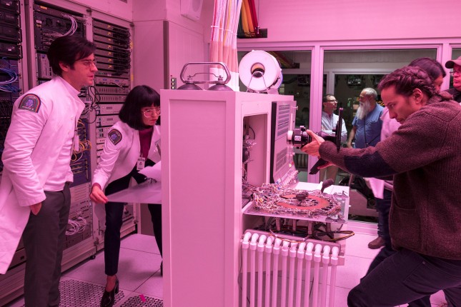 Более того, это редкий проект на телевидении, художникам которого позволили развернуться на полную катушку. Известный перфекционист Кэри Фукунага настоял на том, чтобы большинство декораций были построены вживую, и не просто давал ценные указания художнику-постановщику Алексу ДиДжерландо («ОА», «8 подруг Оушена»), но и привлекал его в качестве полноценного соавтора. Именно стараниями последнего «Маньяк» стал хоть и технологичным, но уютным и ламповым шоу. Выражается это в том, что первую скрипку здесь играет мощный искусственный интеллект, однако облачен он в форму стареньких компьютеров с выпуклыми экранами, старомодными штекерами и огромными кнопками. Ретрофутуристический антураж подхватила и художник по костюмам Дженни Иген, создавшая повседневную одежду не только главных героев, но и персонала Neberdine Pharmaceutical. А композитор Дэн Ромер, работавший с Фукунагой над «Безродными зверями», закрепил ощущение фантасмагоричности происходящего психоделическими электронными мелодиями.