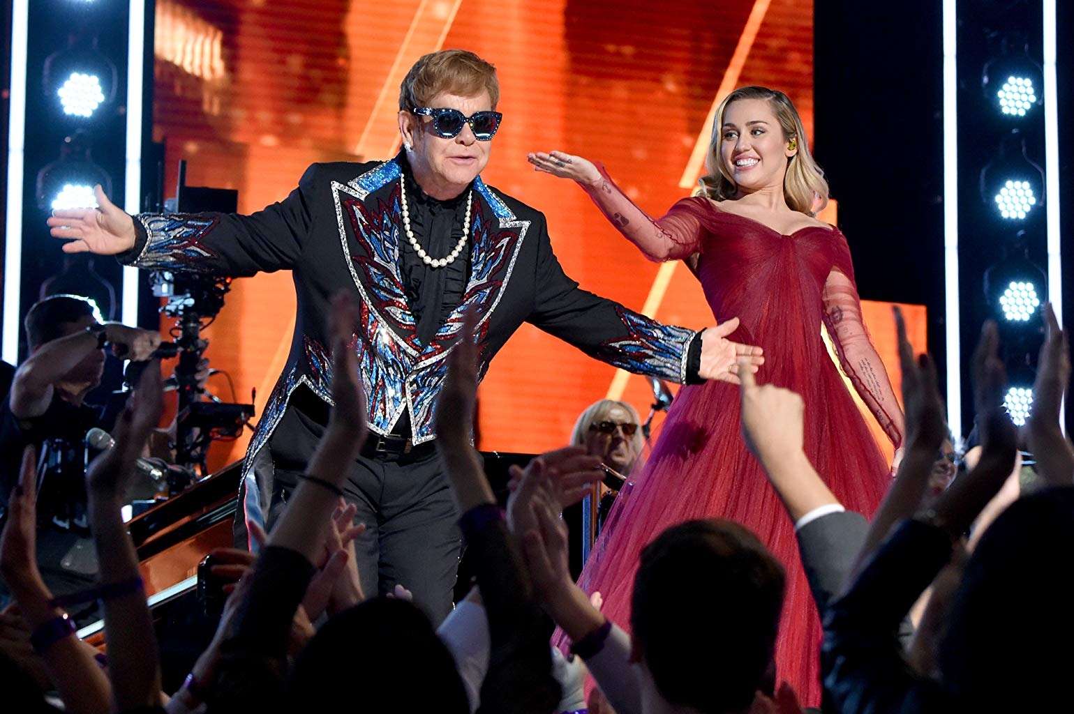 Elton John and Miley Cyrus at an event for The 60th Annual Grammy Awards (2018)
